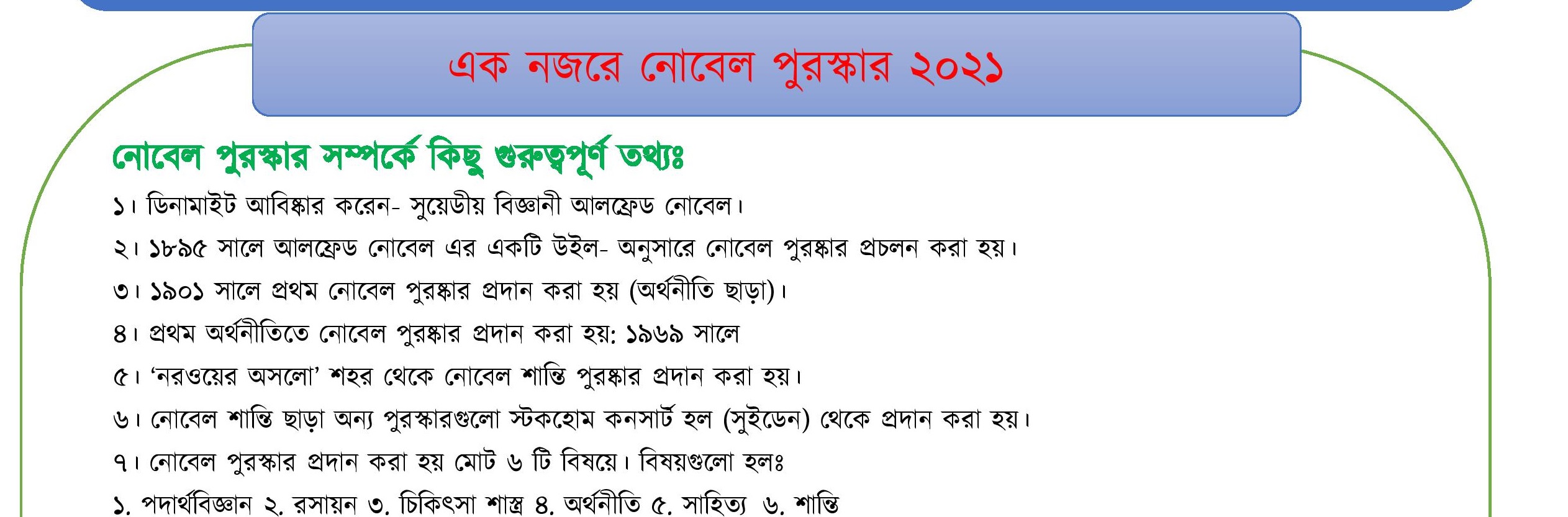 এক নজরে নোবেল পুরস্কার ২০২১