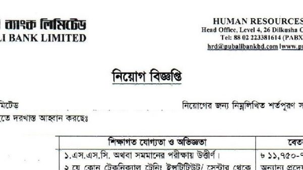 পূবালী ব্যাংক লিমিটেড এর নতুন নিয়োগ বিজ্ঞপ্তি প্রকাশ